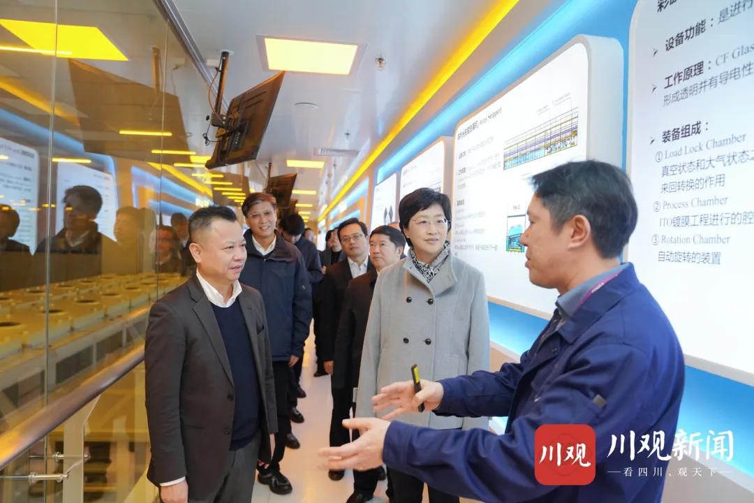 施小琳在綿陽惠科光電科技有限公司,調(diào)研企業(yè)新型顯示創(chuàng)新研發(fā)、產(chǎn)品應(yīng)用和生產(chǎn)經(jīng)營(yíng)等情況。