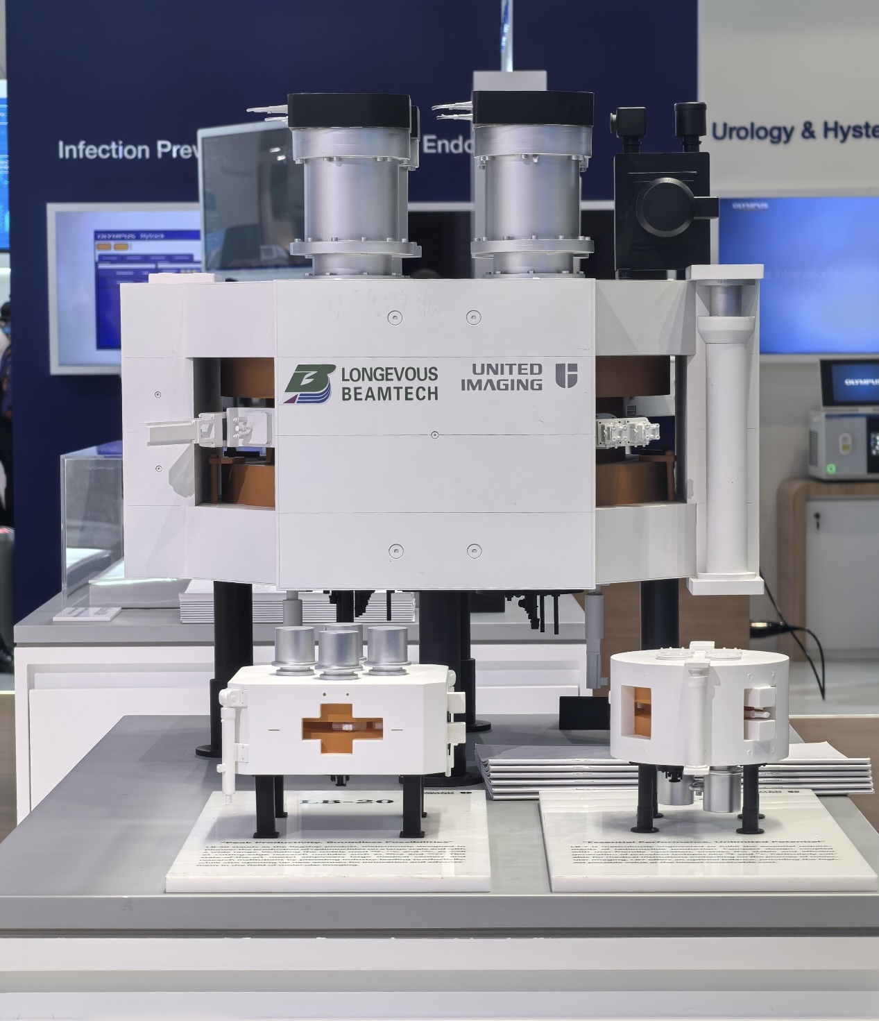 玖誼源攜帶3款不同能級(jí)的回旋加速器(7MeV,11MeV,20MeV)參展,為全球用戶提供放射性同位素生產(chǎn)和研發(fā)的定制化解決方案。三款產(chǎn)品中,LB-7(7MeV)設(shè)計(jì)緊湊,能量適中,能為用戶提供穩(wěn)定的F-18等同位素的生產(chǎn),滿足醫(yī)療機(jī)構(gòu)日常對(duì)于腫瘤及其他重大疾病的診斷需求。LB-11(11MeV)則是為更高的產(chǎn)額,更多種類的核素生產(chǎn),更靈活的升級(jí)方案而生,搭配玖誼源自研的固體靶可產(chǎn)出Ga-68, Cu-64, Zr-89,滿足臨床使用和新型核素開發(fā)的科研需求。LB-20(20MeV)則憑借其優(yōu)越的產(chǎn)能條件、兩檔能量可調(diào)、優(yōu)異的投入產(chǎn)出比吸引了商業(yè)用戶的關(guān)注。