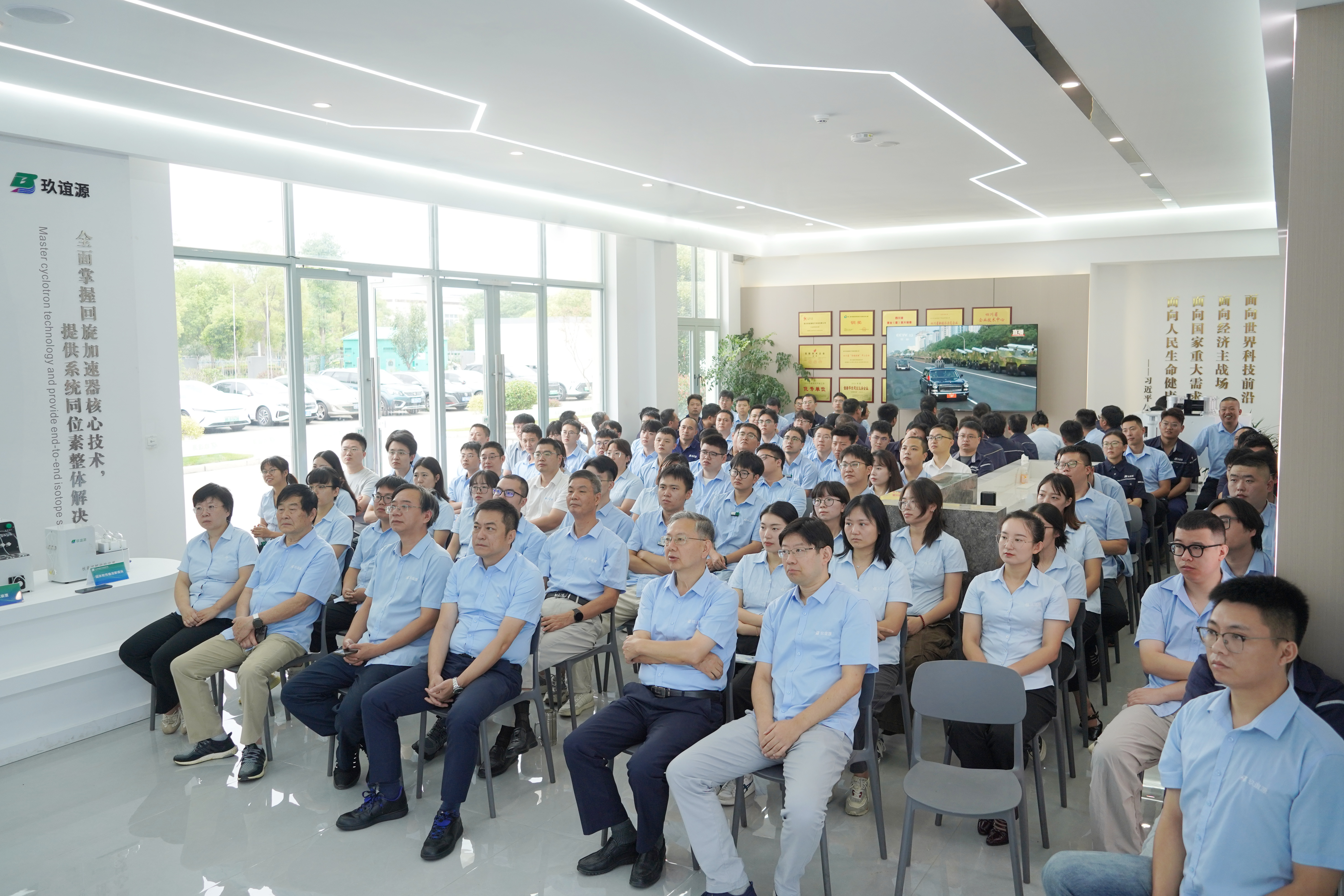 9月3日上午,四川玖誼源粒子科技有限公司大廳內(nèi)莊重肅穆,全體員工齊聚一堂,共同觀看紀(jì)念中國(guó)人民抗日戰(zhàn)爭(zhēng)暨世界反法西斯戰(zhàn)爭(zhēng)勝利80周年大會(huì)。